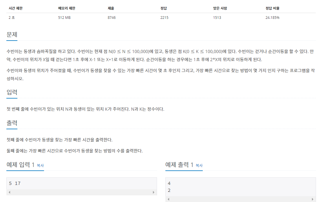 기존 숨바꼭질 문제와 다른점은 중복 방문을 부분적으로 허용해야 한다는 것이다