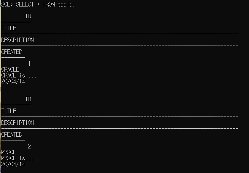 INSERT INTO TOPIC = TOPIC 테이블에 값을 넣을 거야